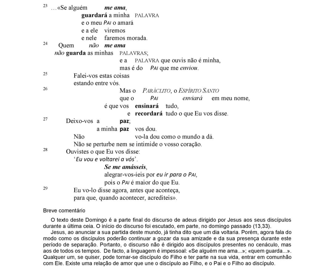 AUTORES II, OLHAR SOBRE OS EVANGELHOS, OLHARES I, PE. JÚLIO FRANCLIM DO COUTO E PACHECO VI Domingo da Páscoa (Ano C) admin_cult 19 Maio, 201913 Maio, 2019 Pe. Franclim Pacheco O texto – Jo 14,23-29 Navegação de artigos 25 anos do grupo ‘Adoramus Te’ – Aveiro | 15 de junho | 17 horas«A Minha vida começa novamente cada manhã.»