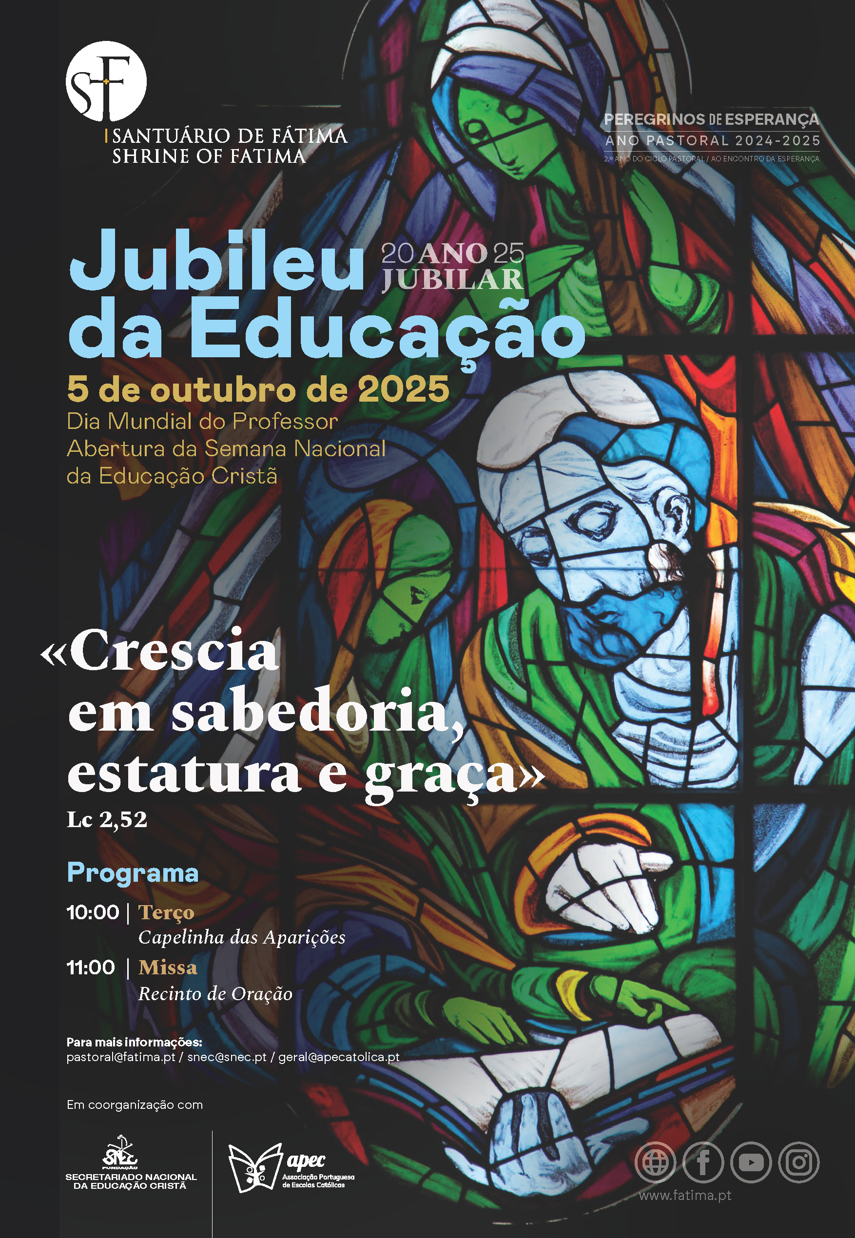 «Crescia em sabedoria, estatura e graça» O Santuário de Fátima, em colaboração com o Secretariado Nacional da Educação Cristã (SNEC) e a Associação Portuguesa de Escolas Católicas (APEC), está a preparar o Jubileu da Educação, que se concretizará em Fátima no próximo dia 5 de outubro, dia internacionalmente celebrado, desde 1994, como Dia Mundial do Professor, e em que tem […]