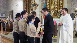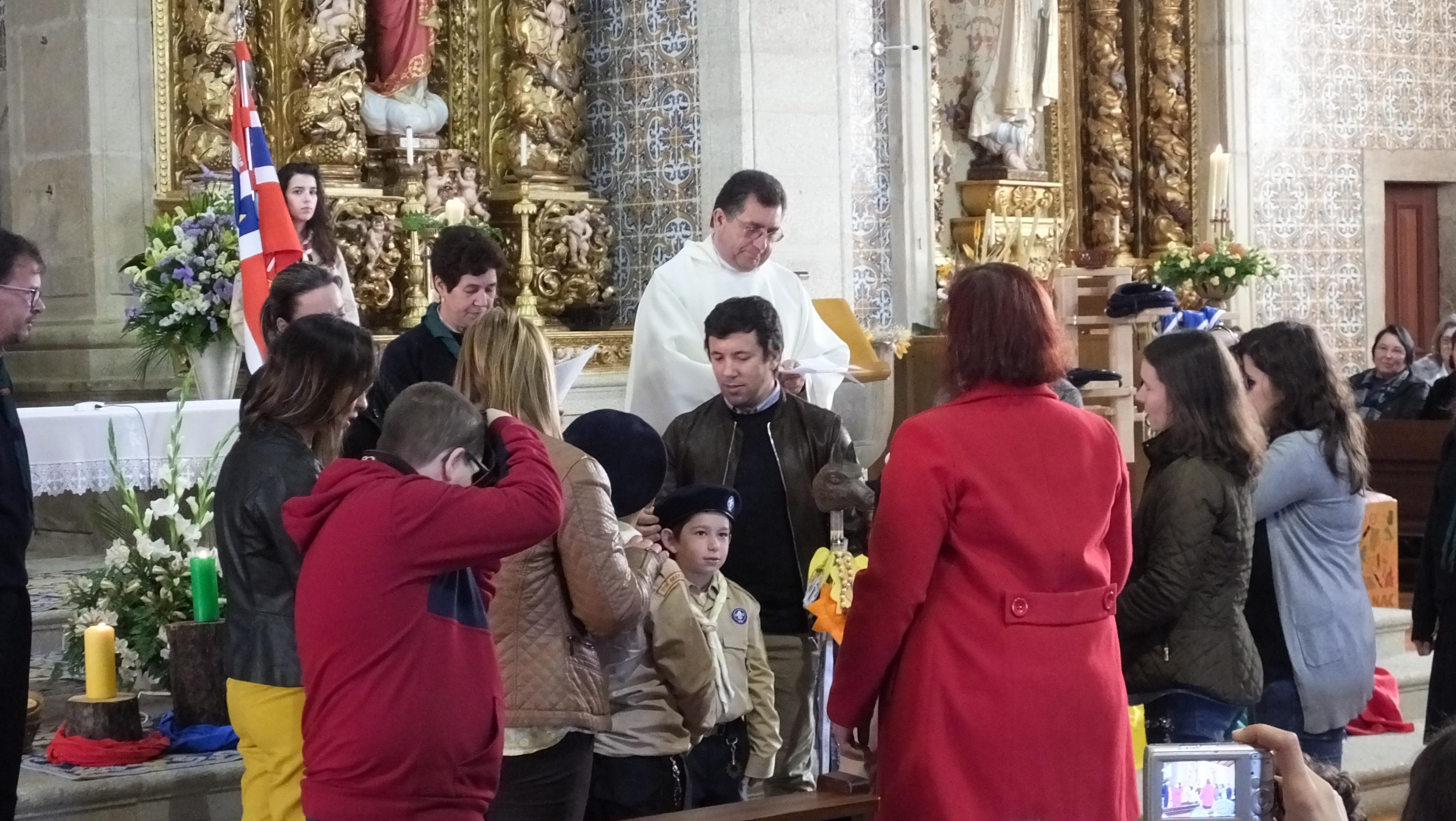 No domingo, inserida na Eucaristia, fizeram a sua promessa 16 escuteiros: 7 lobitos, 2 exploradores e 3 pioneiros e 4 caminheiros.