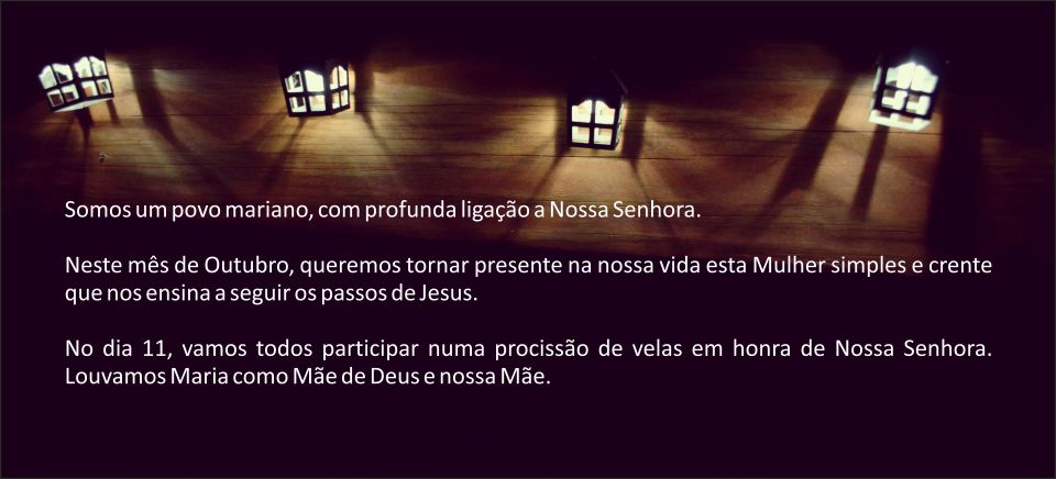 Com a procissão de velas que vamos realizar no dia 11 de Outubro, antevéspera do aniversário da última aparição de Nossa Senhora em Fátima,