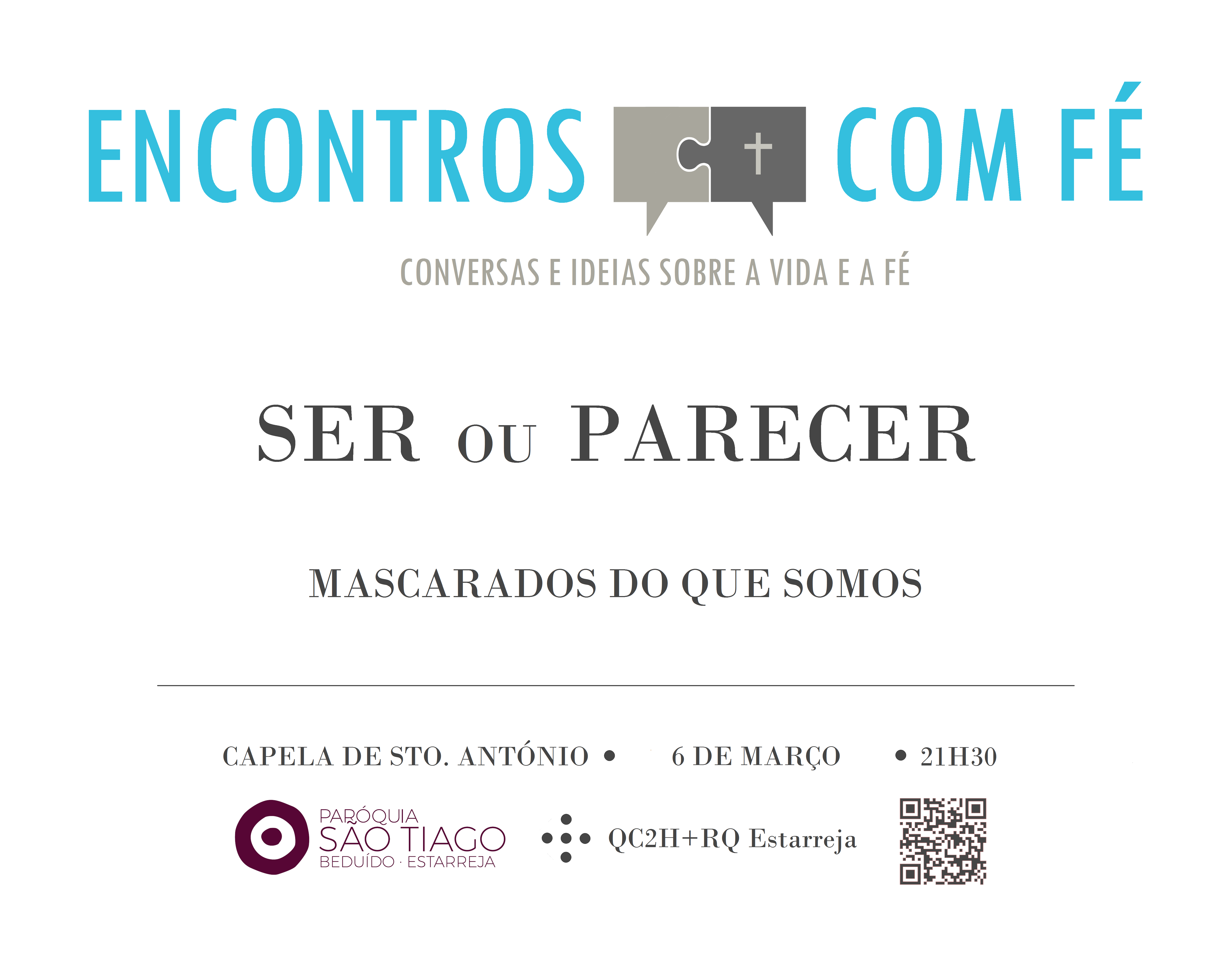 Na sequência do carnaval, onde, entre outras coisas, as máscaras nos fazem parecer o que não somos, queremos dialogar sobre as outras “máscaras” que pomos todos os dias e que querem expressar o que somos ou talvez a forma como desejamos que os outros nos (re)conheçam. Venha participar nesta conversa, na próxima sexta-feira, 6 de março, pelas 21h30, na Capela de Santo António, intitulada “Ser ou parecer, mascarados do que somos”.
