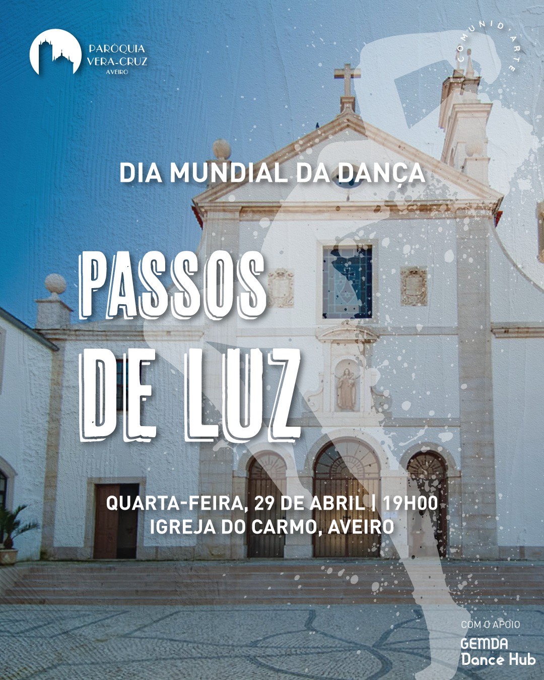 A Paróquia da Vera Cruz, em Aveiro, através do seu projeto de cultura ‘Comunid’Arte’, celebra na próxima quarta-feira do Dia Mundial da Dança. Depois de há uns anos ter promovido uma eucaristia dançava, agora convida a Escola de Dança GEMDA para uma performance contemporânea. Será no átrio da Igreja do Carmo, depois da eucaristia das 18h30, dando continuidade à celebração num momento ao qual deram o nome de “Passos de Luz”.