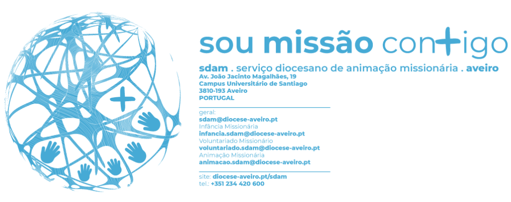 O SDAM – Serviço Diocesano de Animação Missionária de Aveiro em articulação com as OMP – Obras Missionárias Pontifícias de Portugal, dá a conhecer algumas propostas para que em todas as paróquias da nossa Diocese se viva com intensidade e alegria missionária o mês de outubro – mês missionário, e consequentemente todo o ano pastoral, descobrindo também o sentido missionário da vida familiar em articulação com o plano de Pastoral da nossa Diocese.