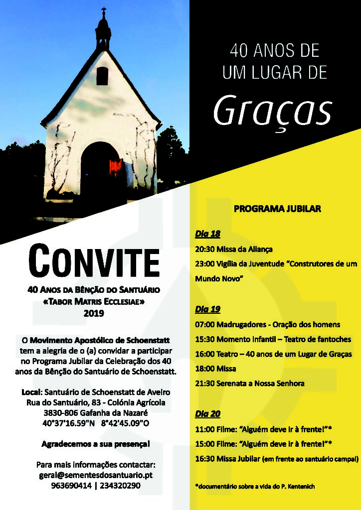 O Movimento Apostólico de Schoenstatt convida todos os diocesanos a participar nas festividades que decorrem de 18 a 20 de outubro próximo.
