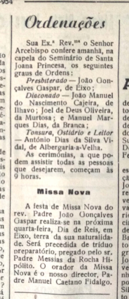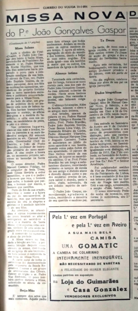 Semanário diocesano “Correio do Vouga”, edição de 16 de janeiro de 1954.