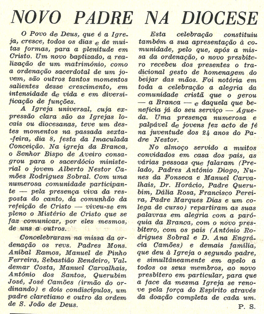 O P.e Alberto Nestor Camões Rodrigues Sobral, nascido a 27 de junho de 1948 na Branca, frequentou os seminários de Calvão, Santa Joana e dos Olivais, em Lisboa. Estudou ainda no ISET, Sintra.
