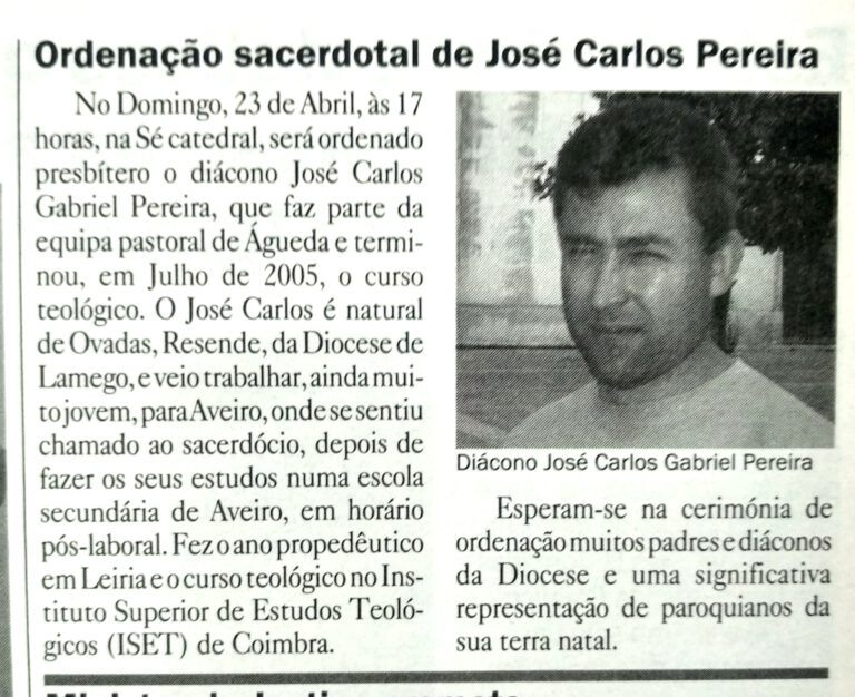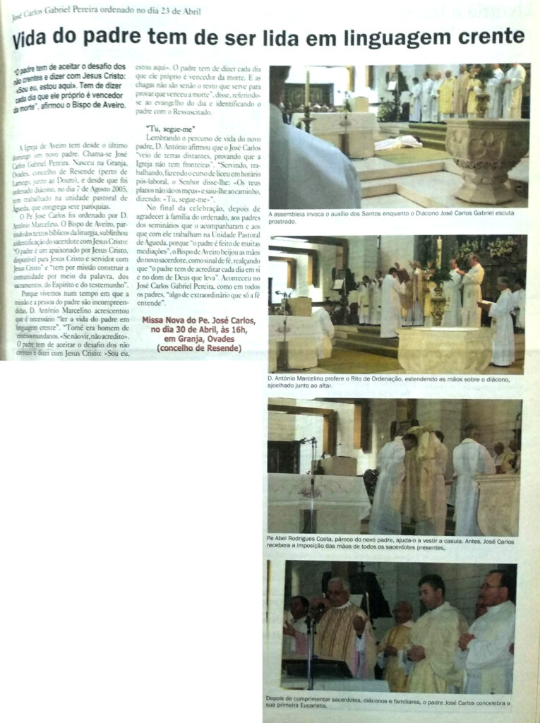 Semanário diocesano “Correio do Vouga”, edição de 12 de abril de 2006