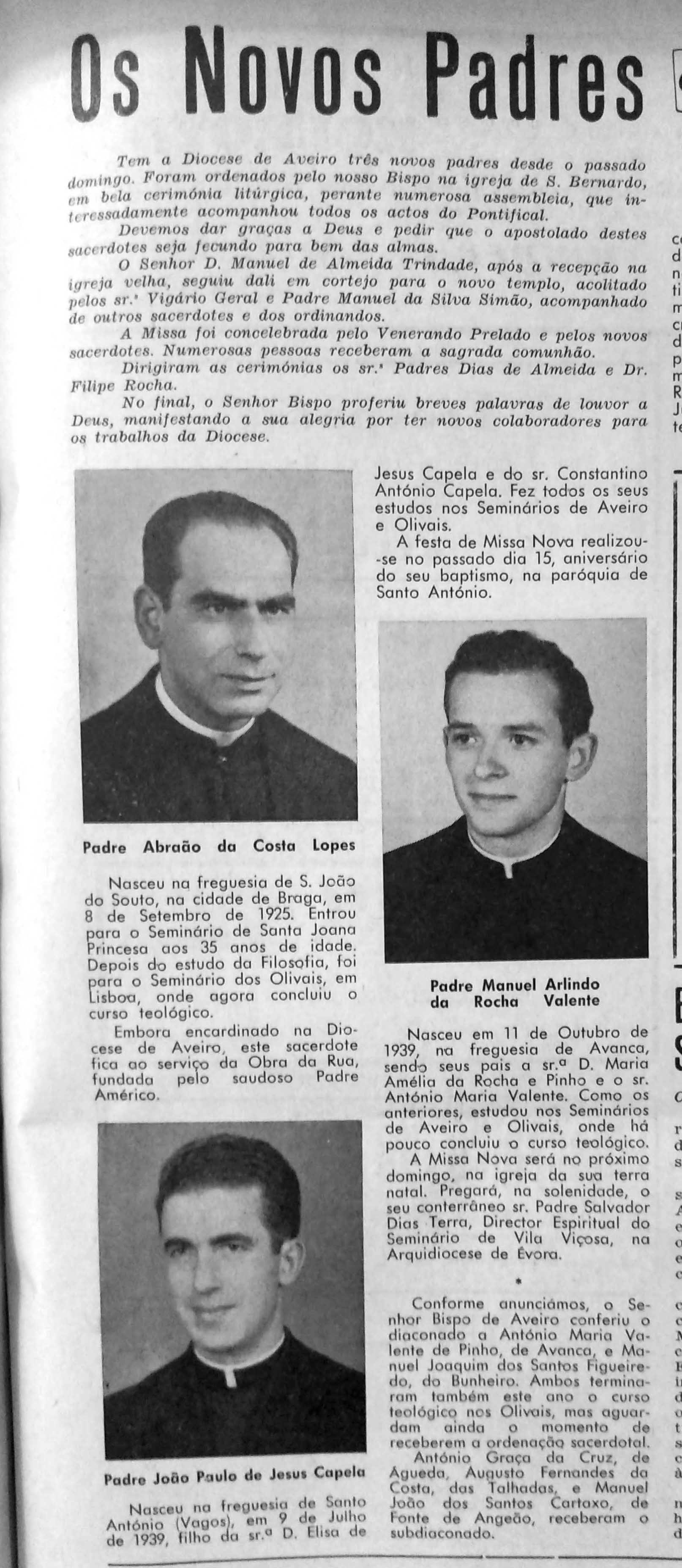 Após a ordenação o Pe. Abraão passou a ficar ao serviço da “Obra da Rua” – Casa do Gaiato.