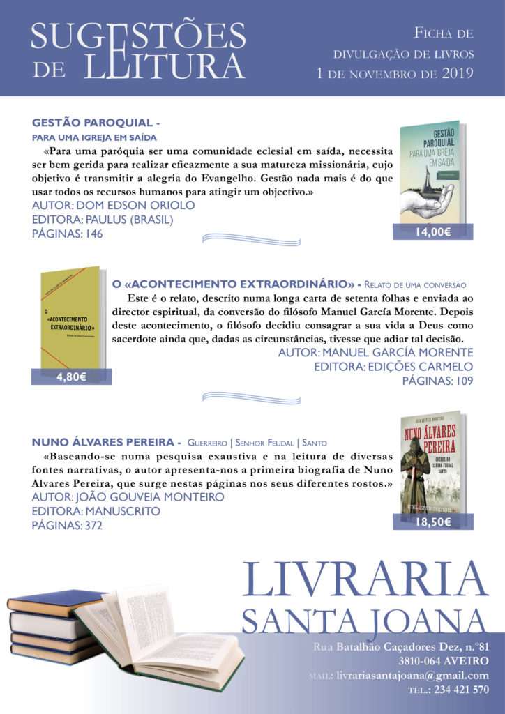 • lançamento do Tomo V, Volume 1, da «História Global de Espiritualidade e Mística em Portugal» e do «Dicionário Global de Espiritualidade e Mística», versão online