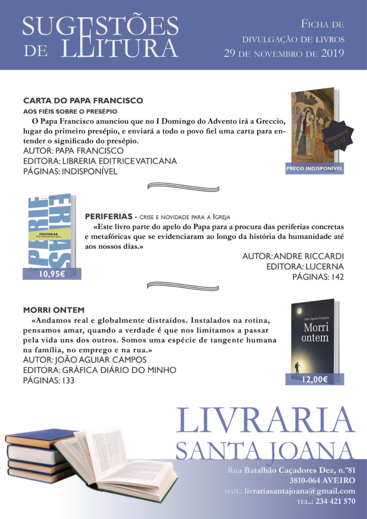 Comissão Diocesana da Cultura Seminário de Aveiro – Centro Pastoral Av. João Jacinto Magalhaes n.º 17 – 3814-506 Aveiro 234 181 293 cultura@diocese-aveiro.pt