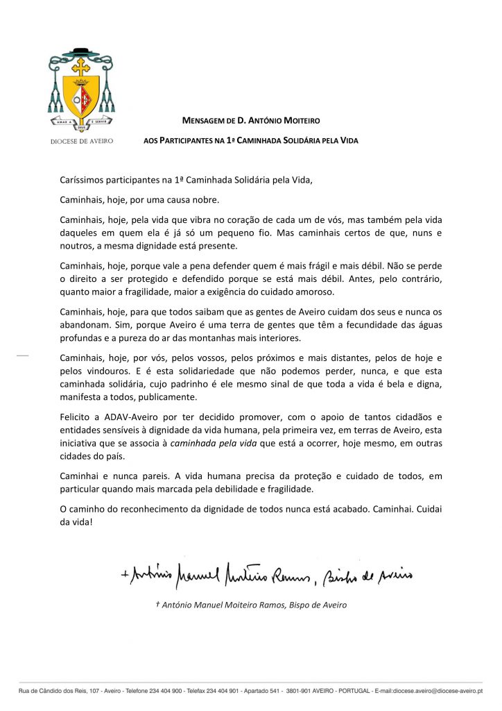 ACONTECE, AUTORES I, D. ANTÓNIO MANUEL MOITEIRO RAMOS, DOCUMENTOS, NOTÍCIAS Mensagem de D. António Moiteiro aos participantes na 1ª Caminhada Solidária Pela Vida admin_cult 31 Outubro, 20178 Novembro, 2017 Navegação de artigos D. António Moiteiro convida diocese a participar na 1ª Caminhada Solidária Pela VidaSereis felizes por minha causa