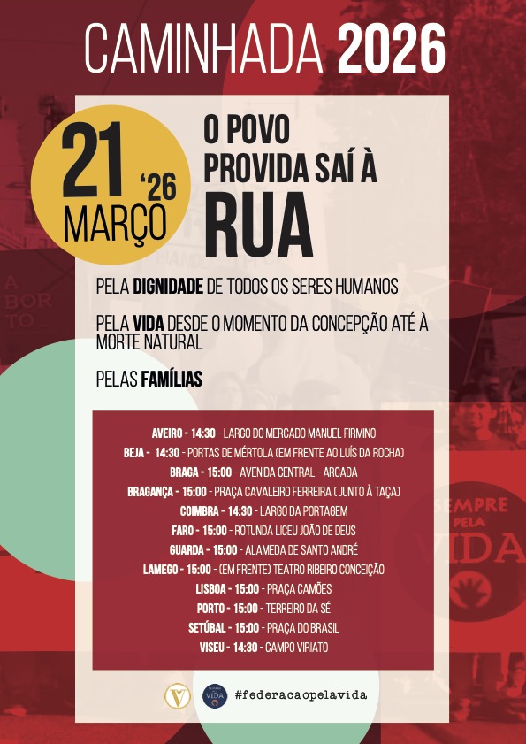 Em 2012, a Federação Portuguesa pela Vida tomou a decisão de realizar anualmente uma Caminhada pela Vida, que este ano vai decorrer no dia 21 de março, sábado, e em 12 cidades portuguesas: Aveiro, Beja, Braga, Bragança, Coimbra, Faro, Guarda, Lamego, Lisboa, Porto, Setúbal e Viseu.