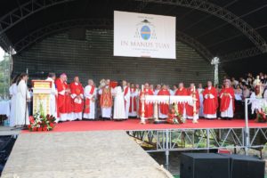 “Com a frase dita em cada uma das dioceses vamos ao encontro deste pensamento e riqueza de vida. O próprio monumento em subida, patamares, com uma mão na cruz e outra a levantar-nos para mais alto: ‘Vamos lá, vamos em frente, continuamos a caminhar juntos’”, desenvolveu.
