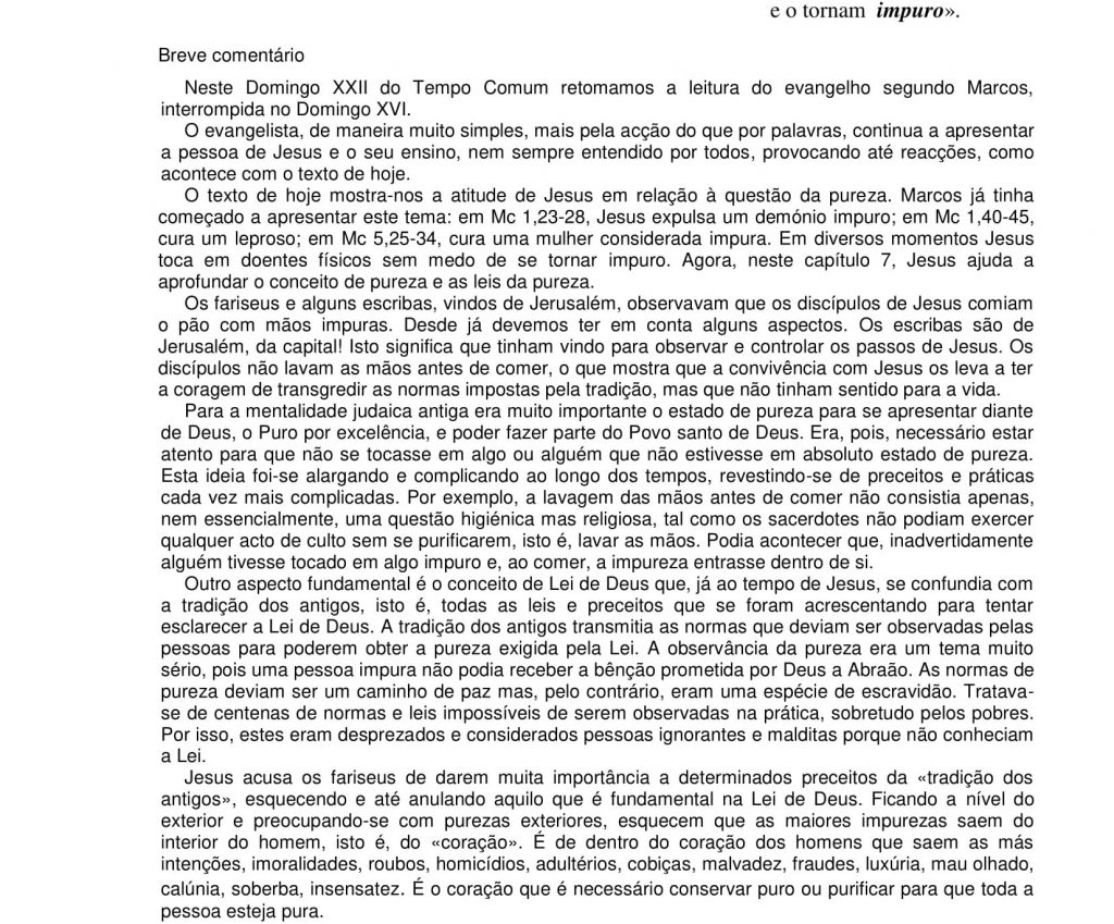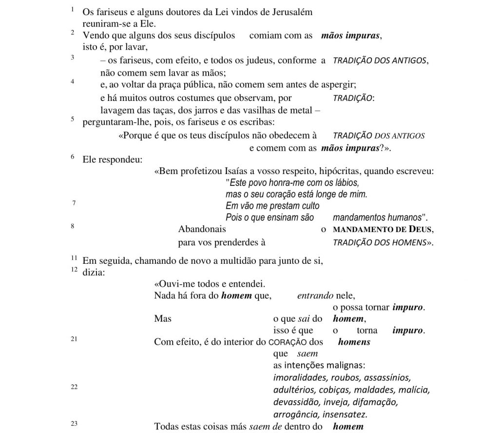 AUTORES II, OLHAR SOBRE OS EVANGELHOS, OLHARES II, PE. JÚLIO FRANCLIM DO COUTO E PACHECO XXII Domingo do Tempo Comum (Ano B) admin_cult 26 Agosto, 20182 Agosto, 2018 XXII Domingo do Tempo Comum (Ano B) Pe. Franclim Pacheco O texto – Mc 7,1-8.14-15.21-23 Navegação de artigos Ficar com Jesus por decisão livreSer idoso em lar comunitário | 3