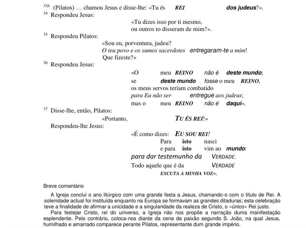 Solenidade de Jesus Cristo, Rei e Senhor do Universo